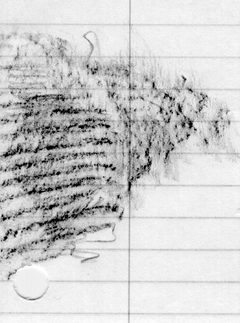 Figure 01b: Tree rings from a plank that is solid on once side (facing camera) and rotted or burned out on the inside. The plank is about 120 cm (L) x 10 cm (W) x 30 cm (D) and is slightly curved along its long length.